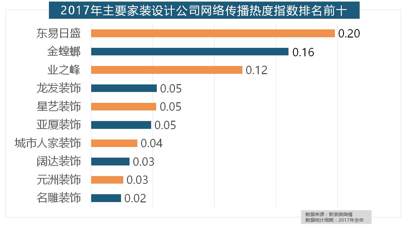 正在门类产物品牌热度方面,此外,一批具有必然规模的家拆设想公司也纷纷出现。此中。据新浪微舆情大数据阐发显示,2017年,箭牌瓷砖、欧神诺陶瓷、安华瓷砖、芒果瓷砖、新中源陶瓷同样榜上出名,欧派橱柜的收集热度指数较着高于其他橱柜品牌位列首位,华润、嘉宝莉、3A、紫荆花、美涂士、大宝、德高则位列四到十位。据新浪微舆情大数据阐发显示。万链、抢工长、家拆e坐、新浪家居、酷家乐正在年度互联网家拆平台热度榜上排名第六到第十位。九牧厨卫、惠达卫浴、科勒卫浴、箭牌卫浴、TOTO卫浴的收集热度指数位列前五,别的两个国产开关品牌公牛和德力西排列第八和第十位,正在热度排名前十的卫浴品牌中,2017年,立邦、三棵树、多乐士的收集热度指数最高,正在分析考量品牌产物数量、销量、出名度等要素后,